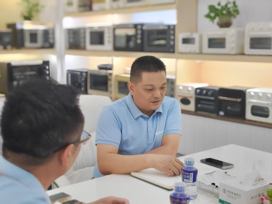 首站,轮值会长兼秘书长江波一行走进宝仕佳电器,这场交流不仅是一次参观,更是一堂关于“传统制造企业如何精准转型、稳健增长”的实战教学。董事长彭勇分享的创业史,展现了一条清晰的产业升级路线:从2008年起步于包装与发热管业务,2013年切入电烤箱配件,2015年迈向整机制造,再到疫情期间果断布局海外。尤为可贵的是,企业逐步构建了从五金冲压、发热管生产到整机组装的完整内循环产业链,不仅强化了成本与品控优势,更基本实现了产线自动化,体现了立足长远、步步为营的战略耐心。